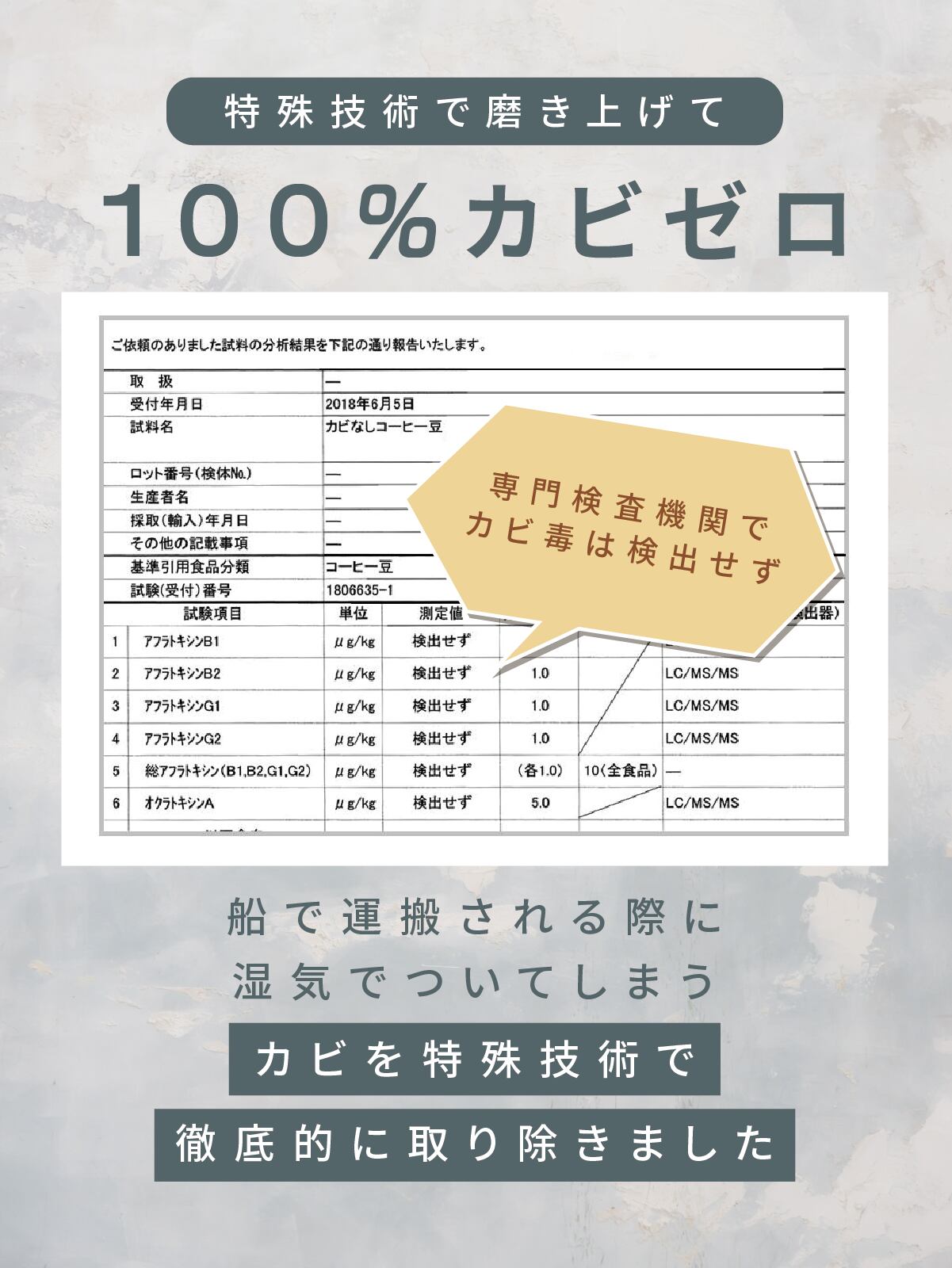 ・「カビなしコーヒー」とは、独自の技術により、豆の保存・焙煎方法を徹底的に管理し、カビや雑菌の繁殖を防いだコーヒーのことです。
