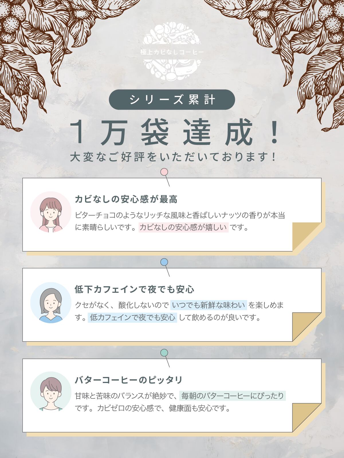 カビなしコーヒーは、品質・健康・環境面からも優れた商品です。